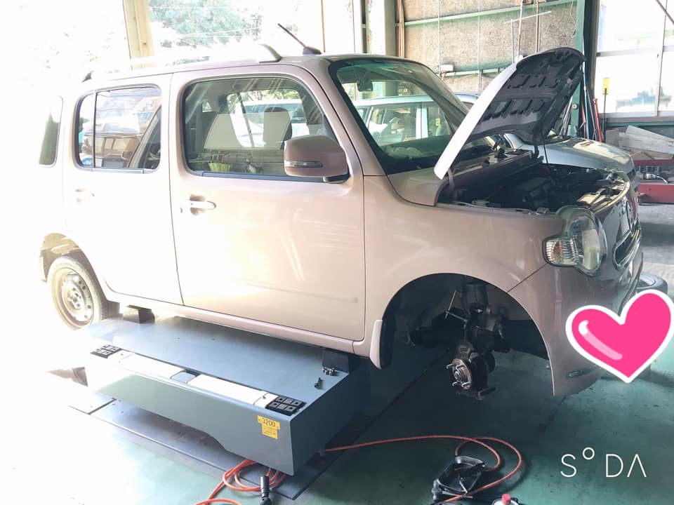 本日、ピンクのココアの車検整備中。